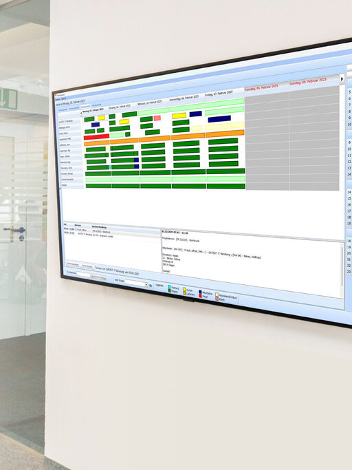 Auf einem LED TV stellen Sie Ihren Monteuren und Büromitarbeitern an zentraler Stelle Ihre Wochenplanung mit den Tätigkeiten jederzeit abrufbar zur Verfügung. Die Installation solcher Systeme erfolgt häufig im Büro oder z.B. im Sozialraum. Über dieses Terminal können Freunde analoger Arbeitsscheine und Wochenplanungen im Bedarfsfall direkt am Terminal ausdrucken.